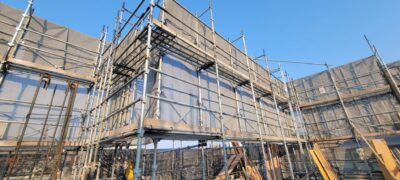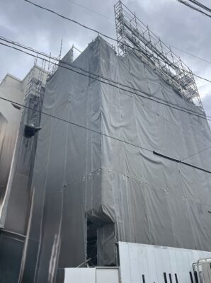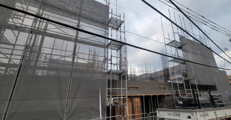 福岡の足場施工・足場仮設工事一式のことは悠興業へ > 施工実績 > RC新築工事 > 福岡市早良区 大規模新築工事 1600㎡
